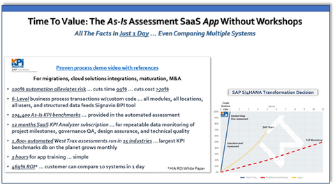 Cost-effective West Trax automated migration assessment methodology can typically save an SAP customer up to 99% in time to value and >70% costs reduction spent in months of Face-to-Face workshops.